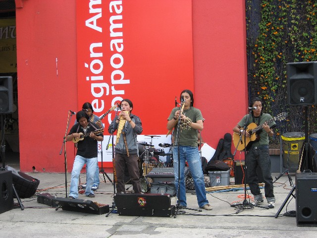 音楽を演奏する人たちがあちこちにいました。彼らはちょっとポップなフォルクローレバンド。