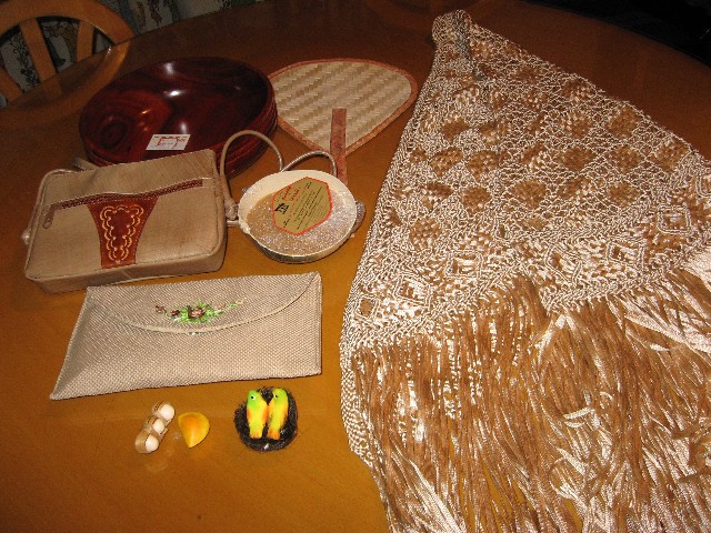 右側の大きいのは今回いちばんの大物で、マクラメのショール。シルクだそうです。けっこう重いんですが、ちょっと晴れやかな場所に行くときにいいかなーと。98000ペソでした。