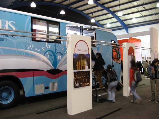 今年は日本・コロンビア修好100周年だそうで、日本が特別招待国でした。日本から図書館バスが供与されたそうです。