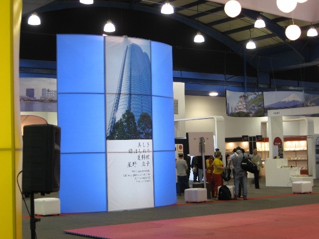 パビリオンのほかのところには、ここは日本の本屋ですかみたいなコーナーもできていました。雑誌はだいたい数年前のもののようだったので、コロンビアを離れる駐在員や家族の人が残していったものでしょうか。これはもちろん展示のみで、持って帰ってはいけません。日本パビリオンの出口チェックは厳しかったです。