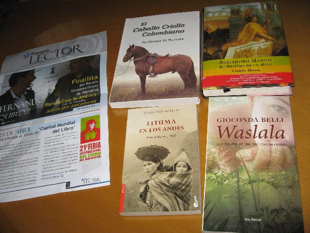 左下はたまには日本でも知られている有名作家の本を読もうと買ってみたマリオ・バルガス・リョサ(コロンビアではジョサと発音するのでペルーでもそうではないでしょうか)の Lituma en los Andes。表紙買いですが、ほのぼのではなさそうです。