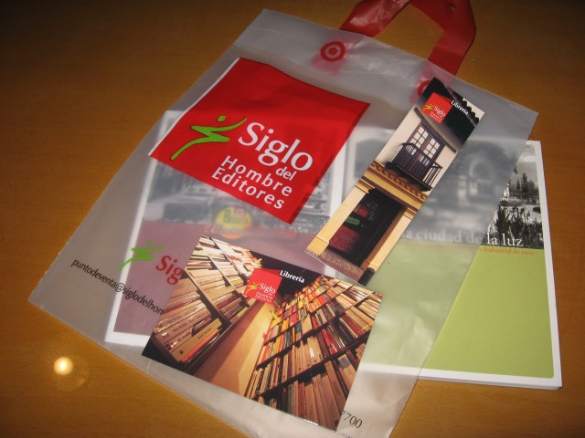 その後、いろんなブースを見て回ってもイマイチぴんと来るものがなく、タッシェンで見たインダストリアルデザインの本を買って帰ろうかなと思っていたところ、Siglo del Hombre という書店ブースでけっこういい本が見つかったので買い込みました。買った本については後述。買い物中の写真はなかったです。